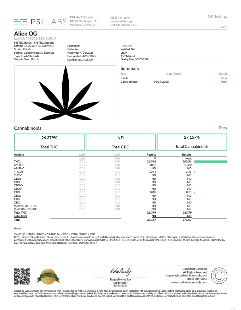 Prepare for an interstellar journey with Alien OG Hashish from We Got Gaz! Crafted from premium Alien OG kief, this hashish captures the essence of a strain that’s truly out of this world. A balanced hybrid (50% indica/50% sativa), Alien OG is a cosmic cross of Tahoe OG, Alien Kush, and an unknown OG strain, delivering THC levels between 20% and 28%. It’s the perfect hash for those craving a potent, retro-inspired escape that hits both mind and body.